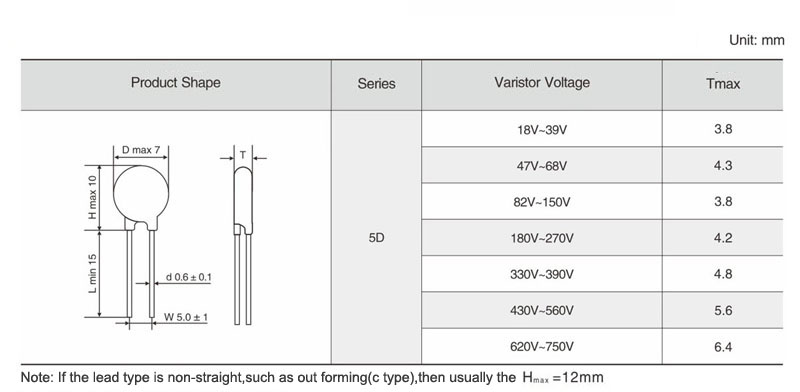 ·The clamping vottage from 180K to 680K is tested with current 1A