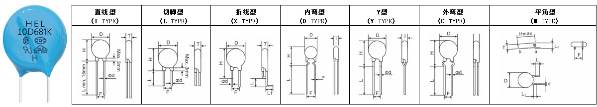 Remark: the Impluse voltage testing standards(1.2/50μs) with 40 times are only applicable to the products which with the varistor voltage more than 430V.