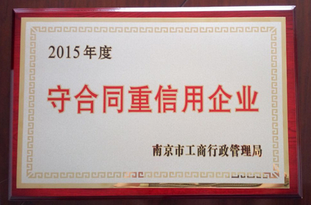 近日,接到南京市企業(yè)信用管理協(xié)會(huì)通知,我公司正式通過(guò)2015年度市級(jí)“守合同重信用”企業(yè)的認(rèn)定,并予授牌和頒發(fā)證書。