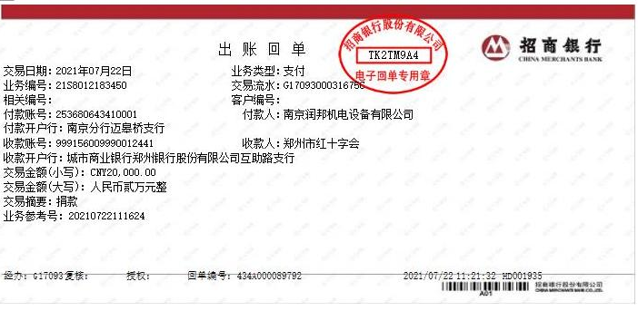 災(zāi)難面前,全國上下風(fēng)雨同行,同舟共濟。7月22日,潤邦公司決定盡我們的綿薄之力馳援河南,通過鄭州市紅十字會捐款人民幣兩萬元整,用于保障受災(zāi)地區(qū)人民群眾的生命安全、緊急救災(zāi)物資采購等助力鄭州市防汛救災(zāi)工作。